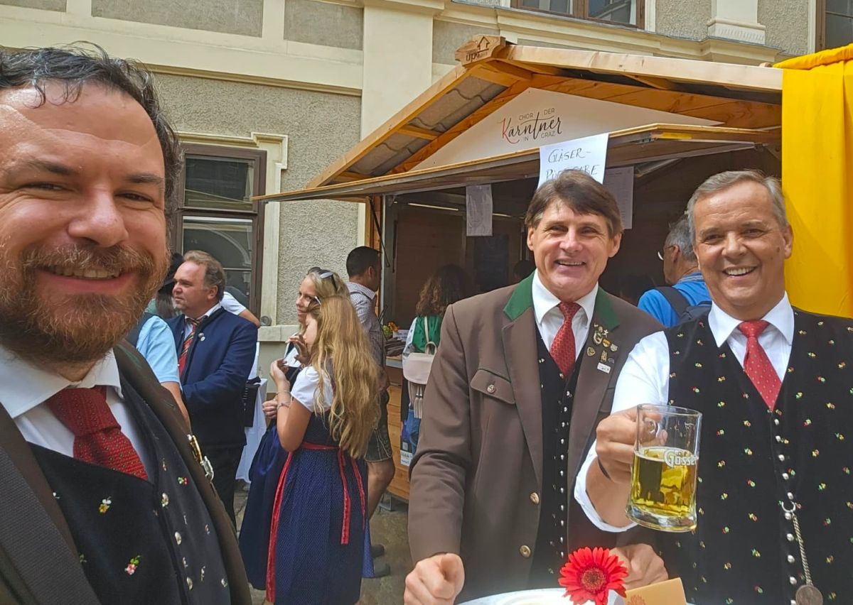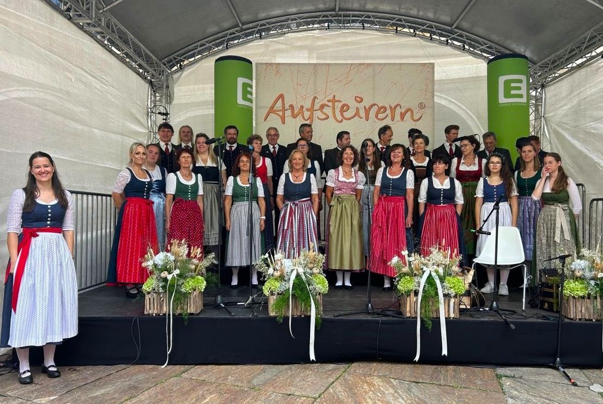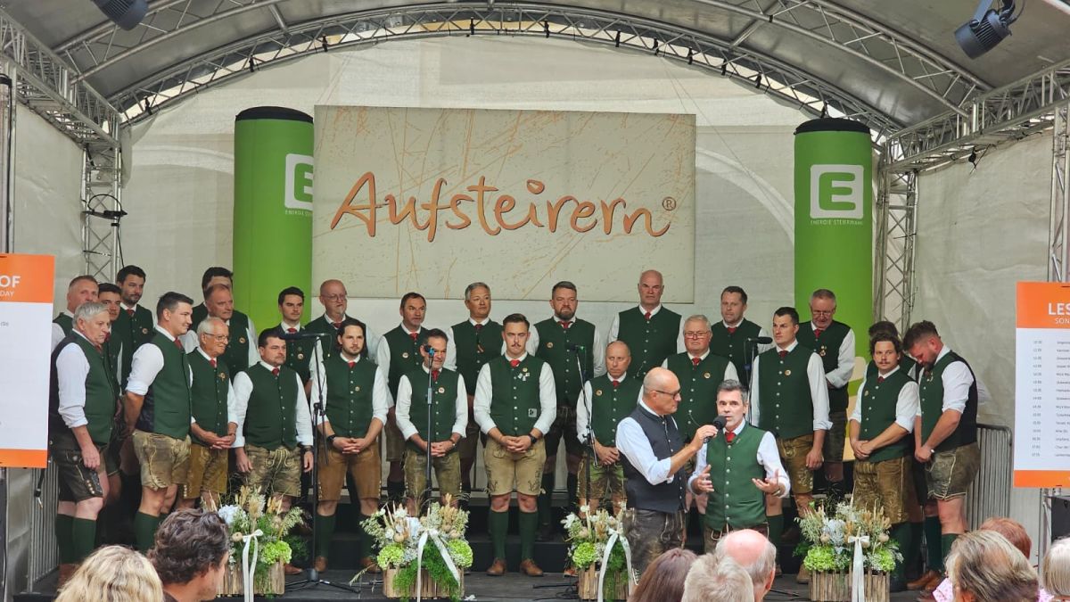 Auch der “Heimatklang” freute sich über die Ehre, zu diesem Festival eingeladen zu werden und so war es für uns selbstverständlich, in einen Bus zu steigen um in die steirische Landeshauptstadt zu fahren. Es ist dies wohl die letzte Busreise unseres Chores über die Pack, da die Eröffnung der Koralmbahn ja kurz bevorsteht. Neben dem “Heimatklang” waren am So, 14. September 2025 auch noch weitere Chöre aus Unterkärnten im Lesliehof zu hören, so der Lavanttaler “Singkreis Thürn” und unsere Nachbarn und Freunde vom MGV Petzen-Loibach. Der Lesliehof entpuppte sich – obgleich auch sehr gut besucht – als wahre Oase im Trubel des “Aufsteirerns”, wobei auch der Wettergott wunderbar mitspielte und wieder einmal bewies, dass wohl wirklich der Herrgott “håt g’sungan, wia er’n Karntna håt g’måcht”.