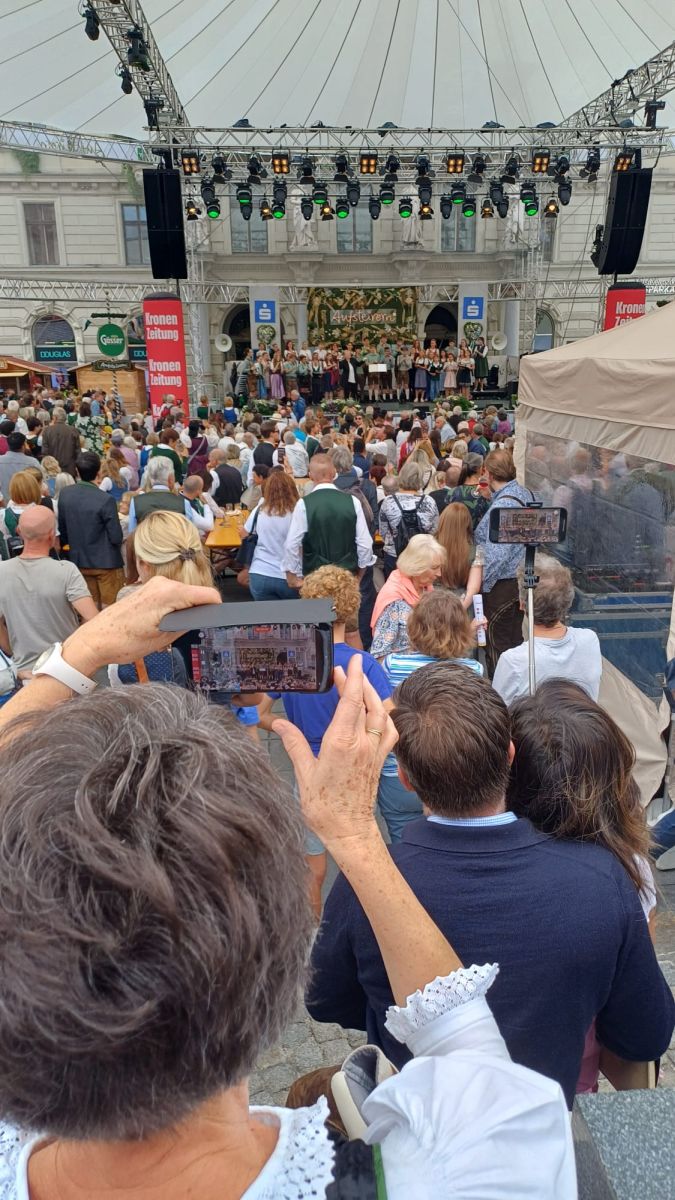 Unsere Chorleiterin Anna hatte wieder ein abwechslungsreiches Programm von der “Jauntålhamat” bis hin zu “Atemlos” zusammengestellt und wir wurden bei mehreren Stücken auch durch unsere mehrfache Harmonika-Staatsmeisterin Laura unterstützt. Neben unserem Auftritt blieb den Sängerinnen und Sängern des “Heimatklang” natürlich auch noch genügend Zeit, sich selbst ins Getümmel zu werfen, die kulinarischen und kulturellen Köstlichkeiten zu genießen und Bekannte zu treffen, bevor uns der Bus der Firma Krainz wieder zurück nach Hause brachte.